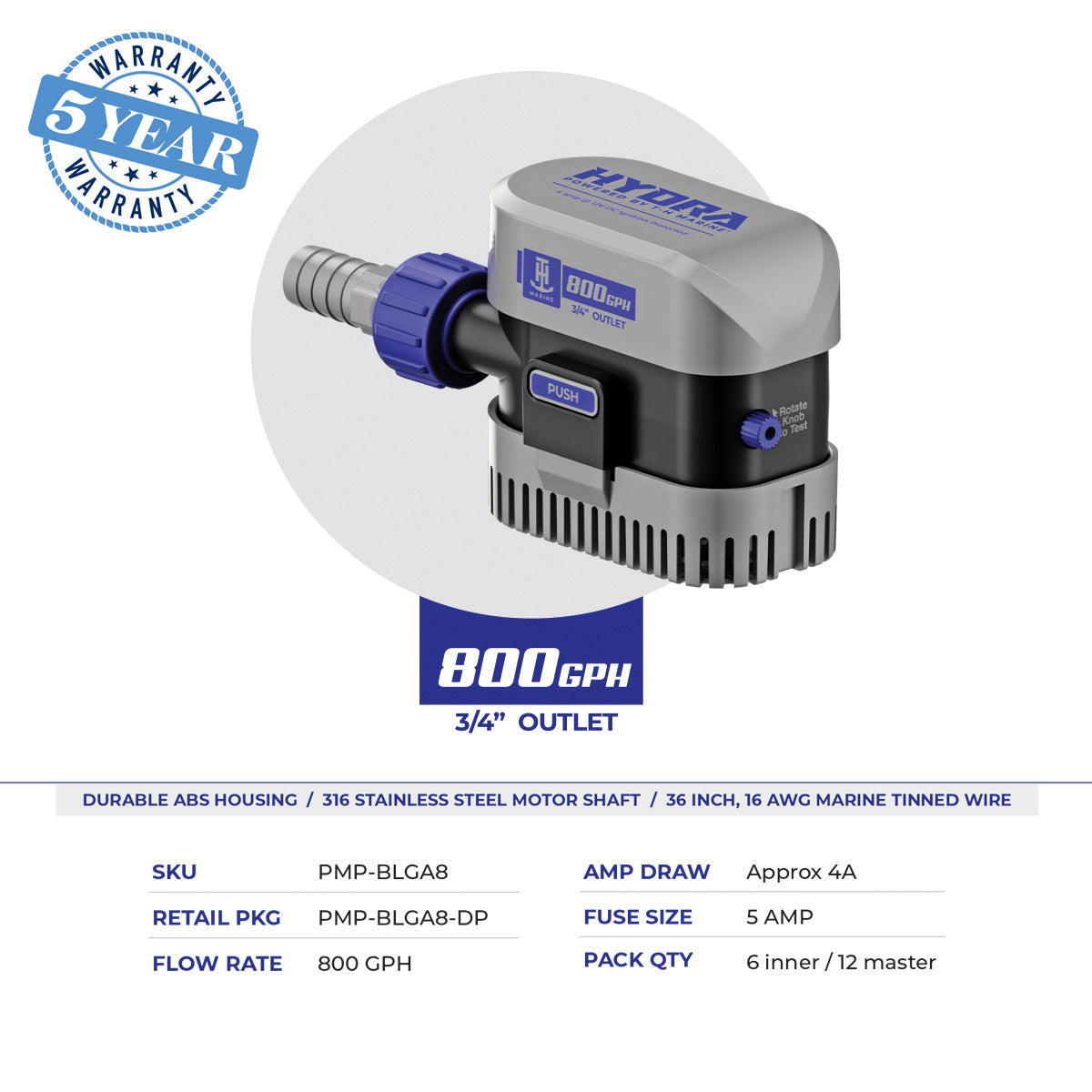 - 316 STAINLESS STEEL MOTOR SHAFT: Corrosion-resistant for long-term durability.
